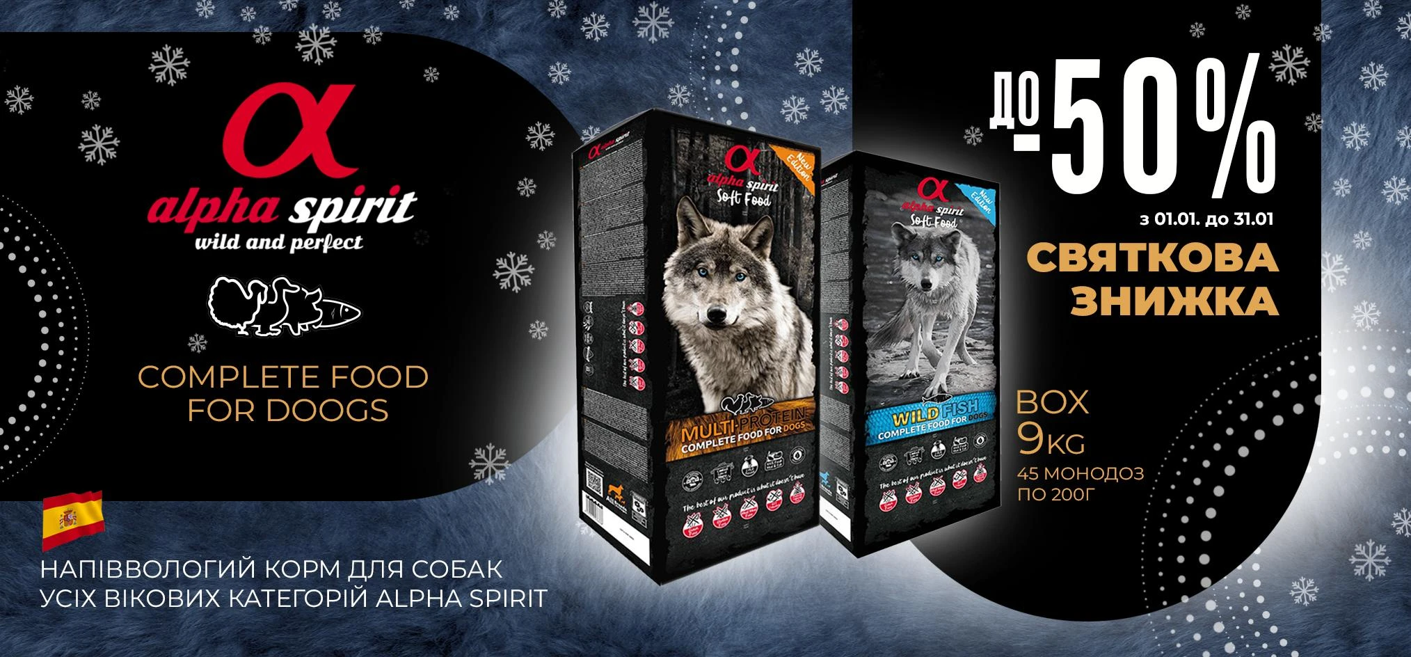 ALPHA SPIRIT Semi-Moist Multi-protein Box Напіввологий корм для собак усіх порід та вікових категорій